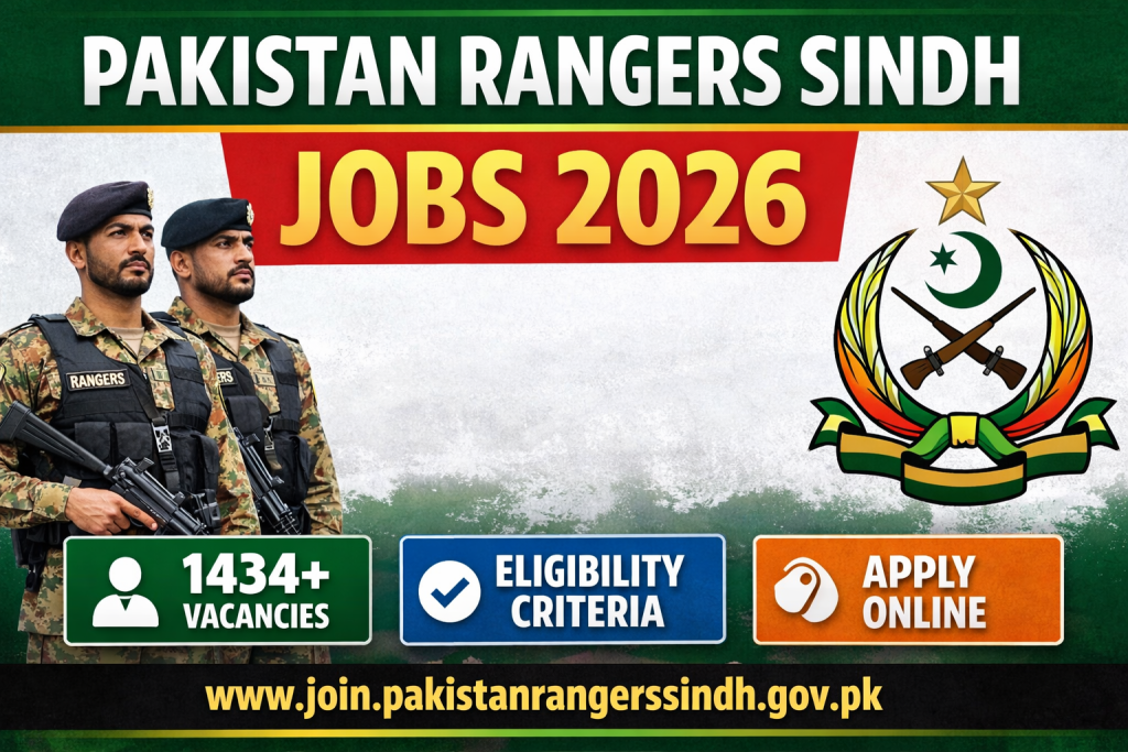 Pakistan Rangers (Sindh) has announced latest government jobs for 2026. A total of 1434 vacancies are available for different positions including Sub Inspector, Havaldar, Naik, Sipahi, Clerk and Non-Combatant Enrolled staff. Candidates from all over Pakistan who meet the eligibility criteria can apply online through the official recruitment website.